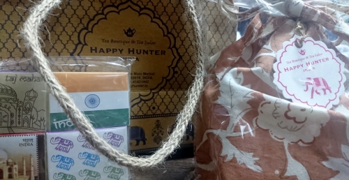 包まれている紙袋も、インドの物だそうです。持ち手部分が麻が撚って造られていたり、袋の模様が「象」であったり、インドっぽい![]()
