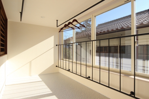 窓際のステンレスパイプは、窓を大きく開放した際に、落下防止の手摺・兼、布団干し、またはシーツ干しの役割を果たします![]()