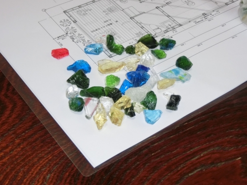 お客様が、以前、沖縄でお店を開かれていたという事で、今回のお店の中でも、「琉球ガラス」をどこかに取り入れてみたい!