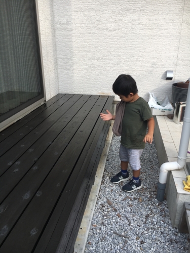 デッキの板と板の間に、お庭の小石が綺麗に埋め込まれている事が判明!!