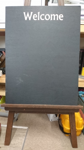鉛筆で文字を下書きして、ブラックボードの文字の塗料を練りこみ(^^)
