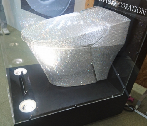 文字がすべて、一つずつの洋便器の陶器の小っちゃいのが並べて作られてあります。かわいかった~![]()