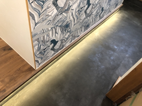 玄関の上がり框の部分に、足元を照らすために入れた間接照明。
