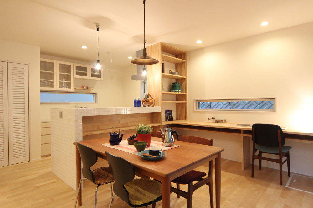 閑静な住宅街に計画をした暮らしやすさの工夫を、自分たちの楽しみを随所に取り入れたプランです。現在は4人家族ですが、将来はもう一人増えることも期待して・・・。