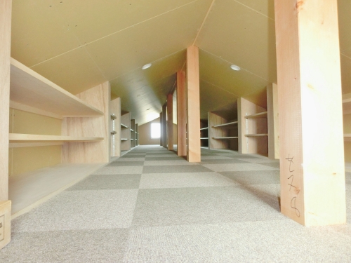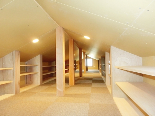 大容量の小屋裏収納。奥様所有の本を全て収納するための場所。この空間に納まった本を思い浮かべて、打合せ中から奥様はとっても嬉しそうでした。