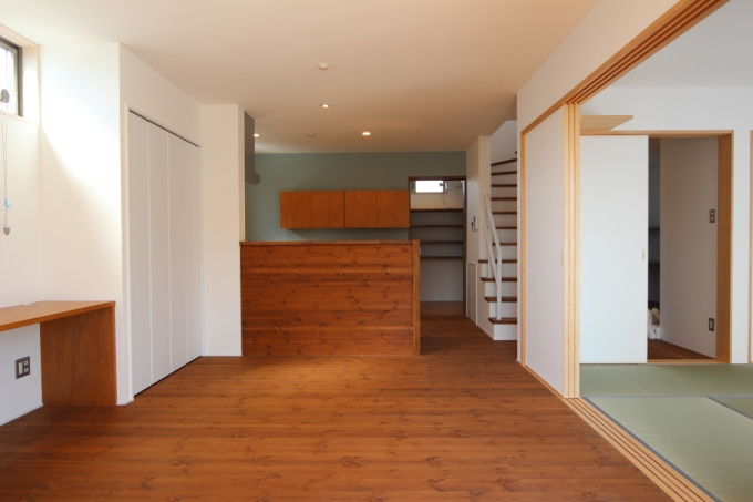 長年住み慣れたお家の建替えた事例です。ご主人が生まれた頃からの思い出が詰まったお家の建替えでしたので、その思いを新しいお家でも、ご家族皆さまで共有出来るよう古材をどこに取り入れるか?という事も、設計を進めていく上で、大きなポイントとなりました。ご家族3人と、家族同様の柴犬の合わせて4人家族です。