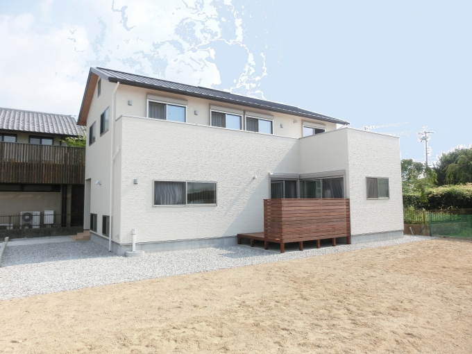 蒲郡市の住宅街、メイン通りから一本奥に入った道沿いになるため、静かで、かつ、お隣の緑にも恵まれている好条件を持った敷地に建つ、収納量抜群のO様邸。